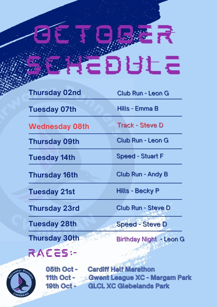 Fairwater Runners Cwmbran meet on Tuesday’s and Thursday’s at Cwmbran Stadium. Meeting times are as follows: